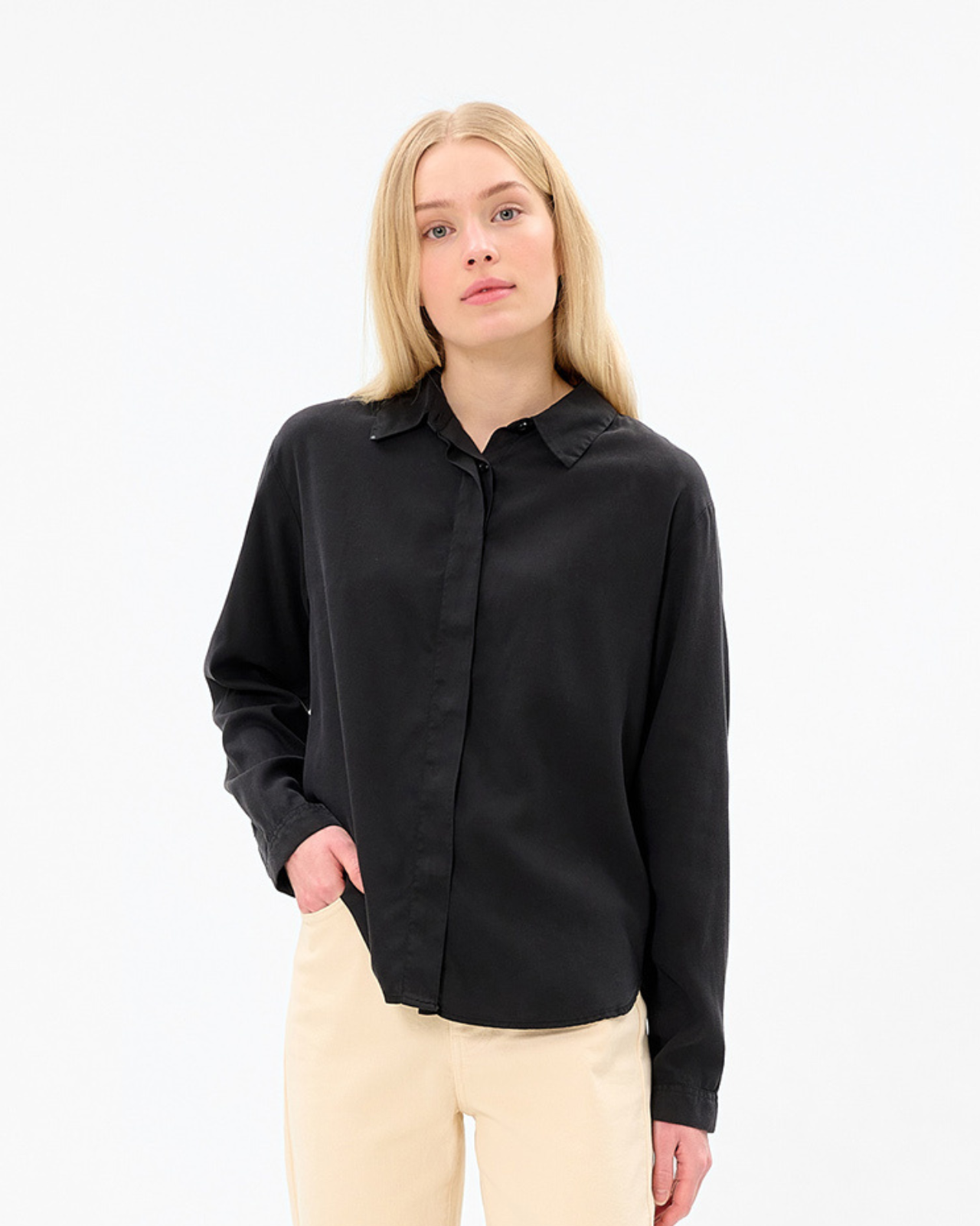 Vores populære EMMA skjorte er kort med en elegant og afslappet pasform. Den har de fineste detaljer, som slidser i siderne med afrundede kanter, skjult knaplukning foran og utrolig smukke rynker bagpå. Er fremstillet af 100% certificeret TENCEL™ Lyocell, der føles fantastisk blød mod huden.